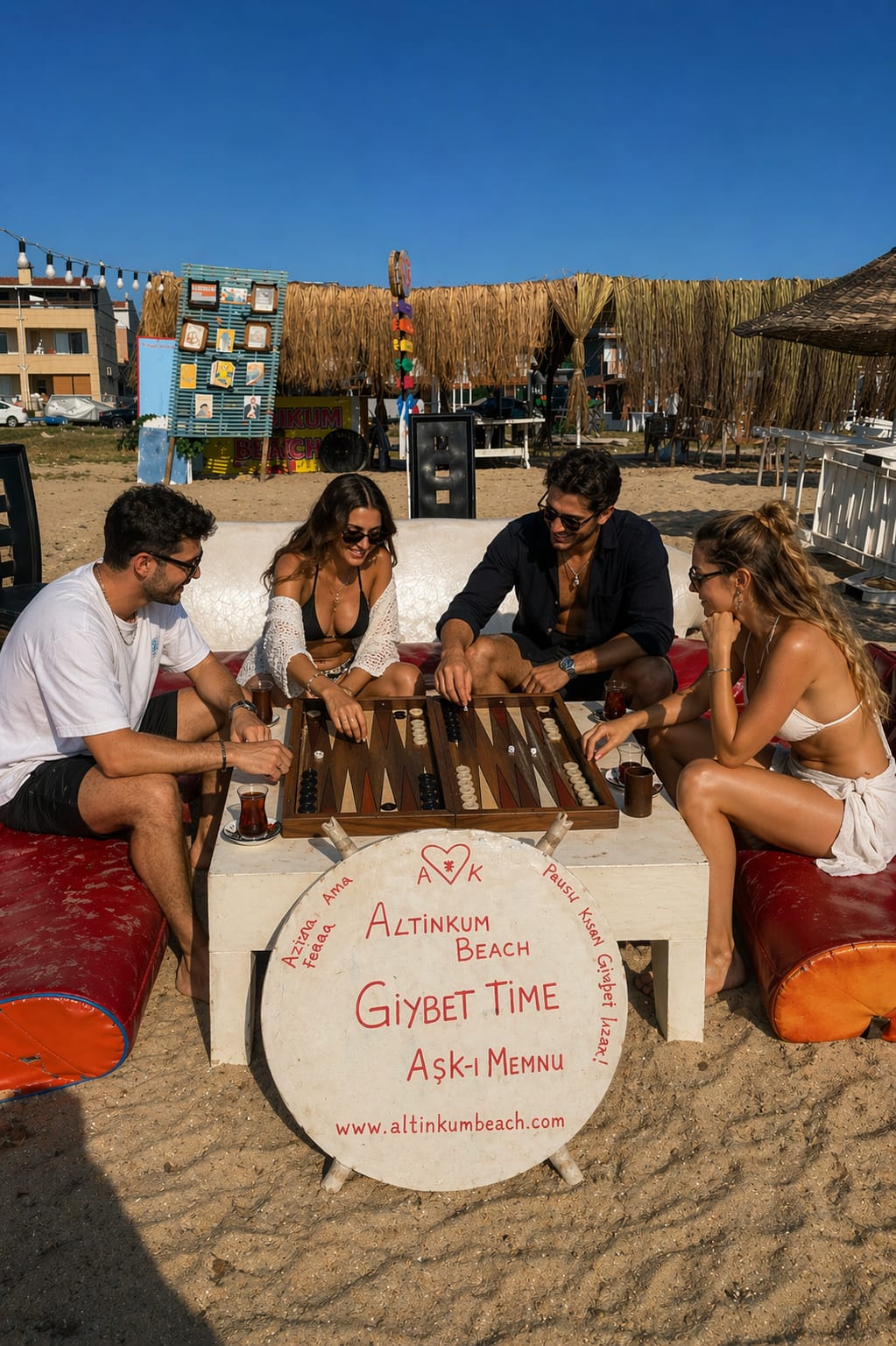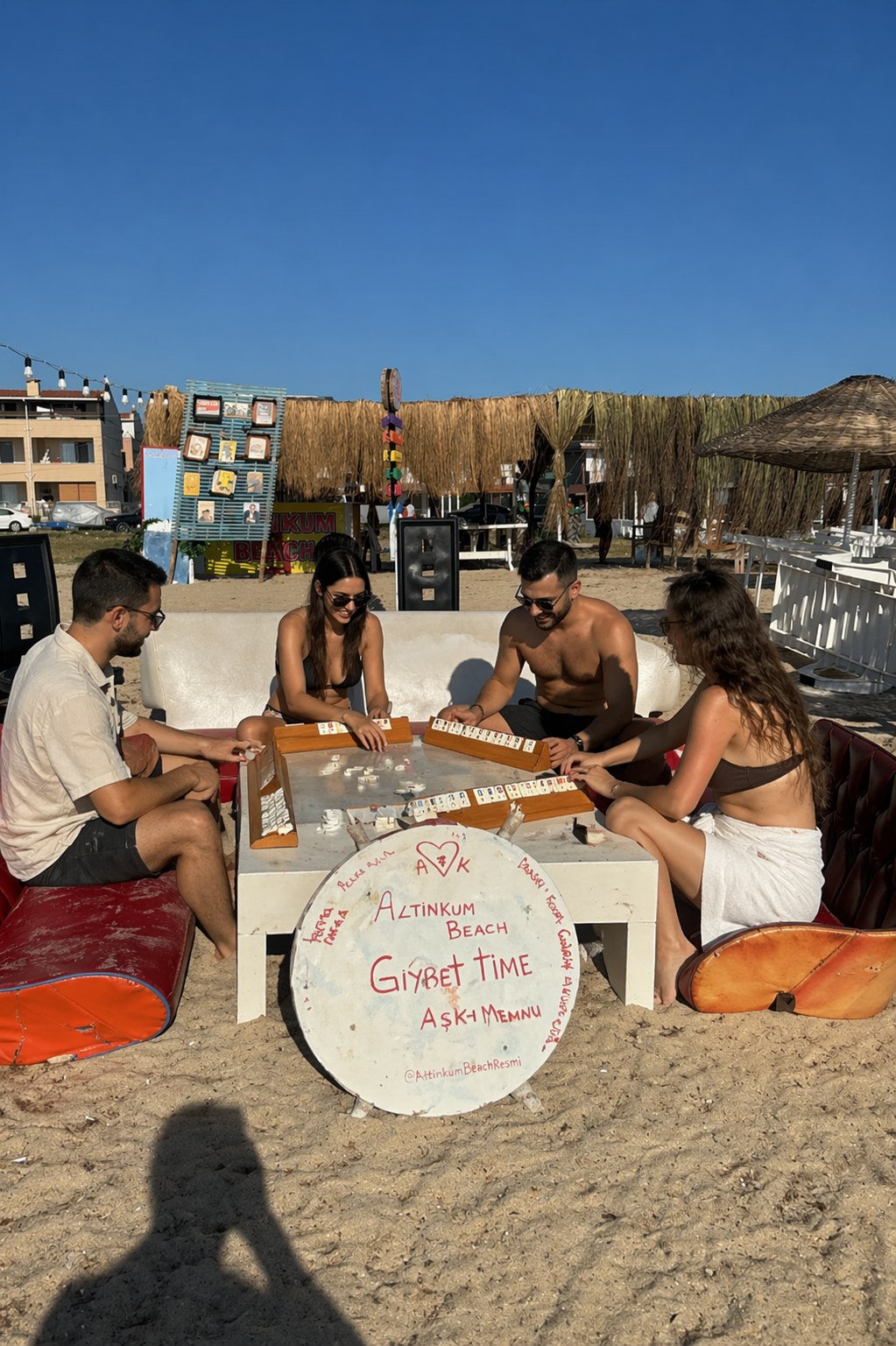 Altınkum Beach; 2007'den beri deniz, kum, güneş ve yaz keyfini bir arada sunan özel bir sahil deneyimidir. Ferah atmosferi, beach ruhunu taşıyan yapısı ve huzurlu ortamıyla ziyaretçilerine keyifli anlar yaşatmayı hedefler.